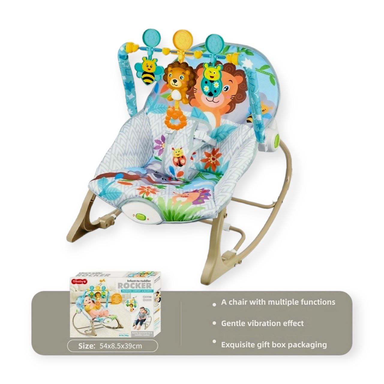 Baby Rocking Chair + Vibration - Lion Blue
